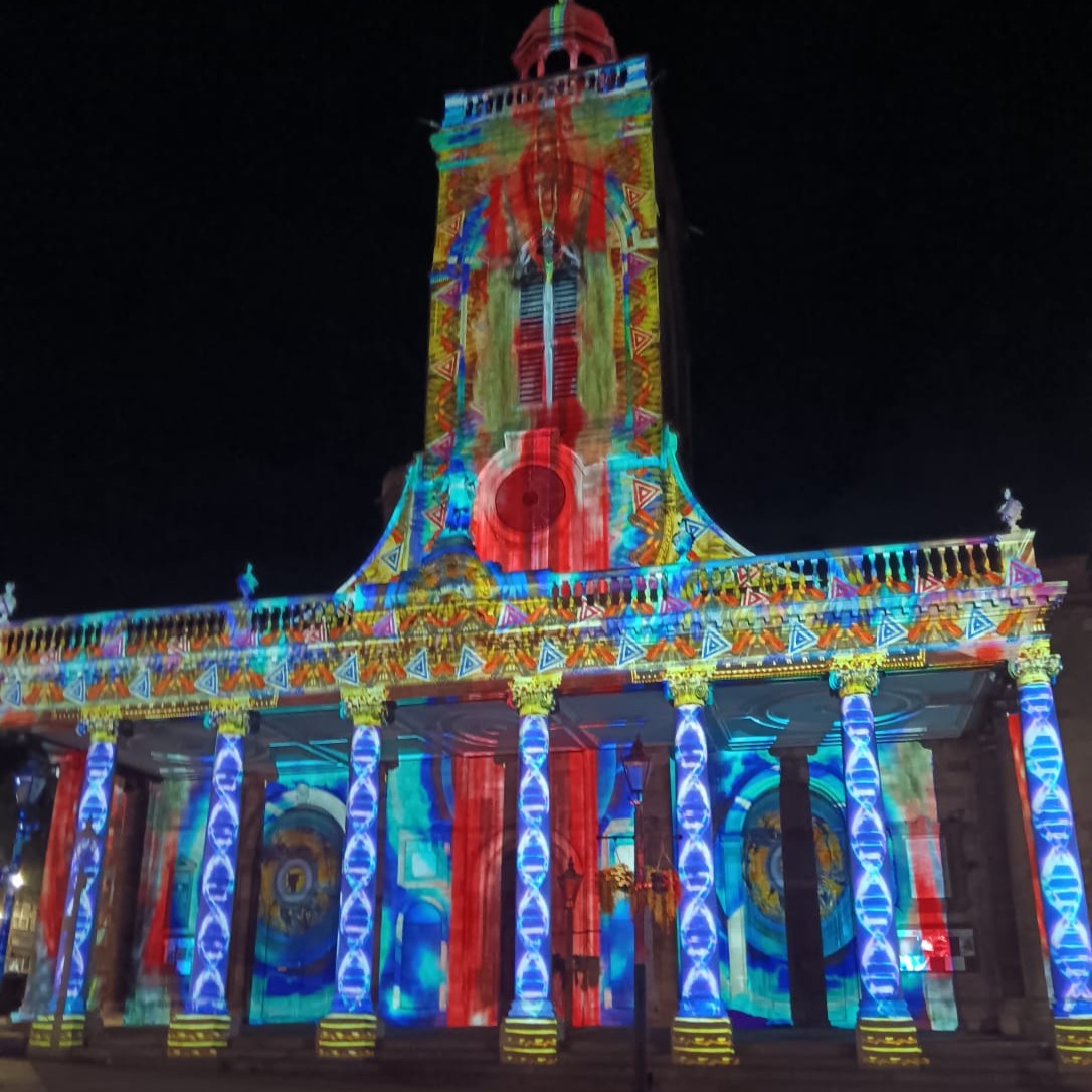 Daniel Tabor, a former Chair of NIFF, had been invited to be one of the guest curators for the exhibition ‘A History of Northampton in 100 Objects’ on behalf of NIFF and the Northampton Jewish community. He chose to curate the unique 13th Century fragment of a Jewish tombstone, the only such artefact in the UK. The private viewing was held on 19th September at the Northampton Museum and Art Gallery, the day before the exhibition was open to the public, and members of the NIFF committee attended. The exhibition runs till 8th February 2026. The private view coincided with a wonderful light display on the façade of All Saints’ church, commemorating the Great Fire of Northampton